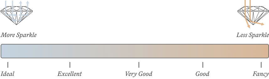 The shape of the stone refers to whether the stone is a round cut diamond, princess cut diamond, cushion cut etc. A diamond’s cut is actually an assessment of the skill of the artisan who plans, maps and hand cuts the facets on each individual diamond which is the most important factor in determining its quality in terms of fire, brilliance, and scintillation.